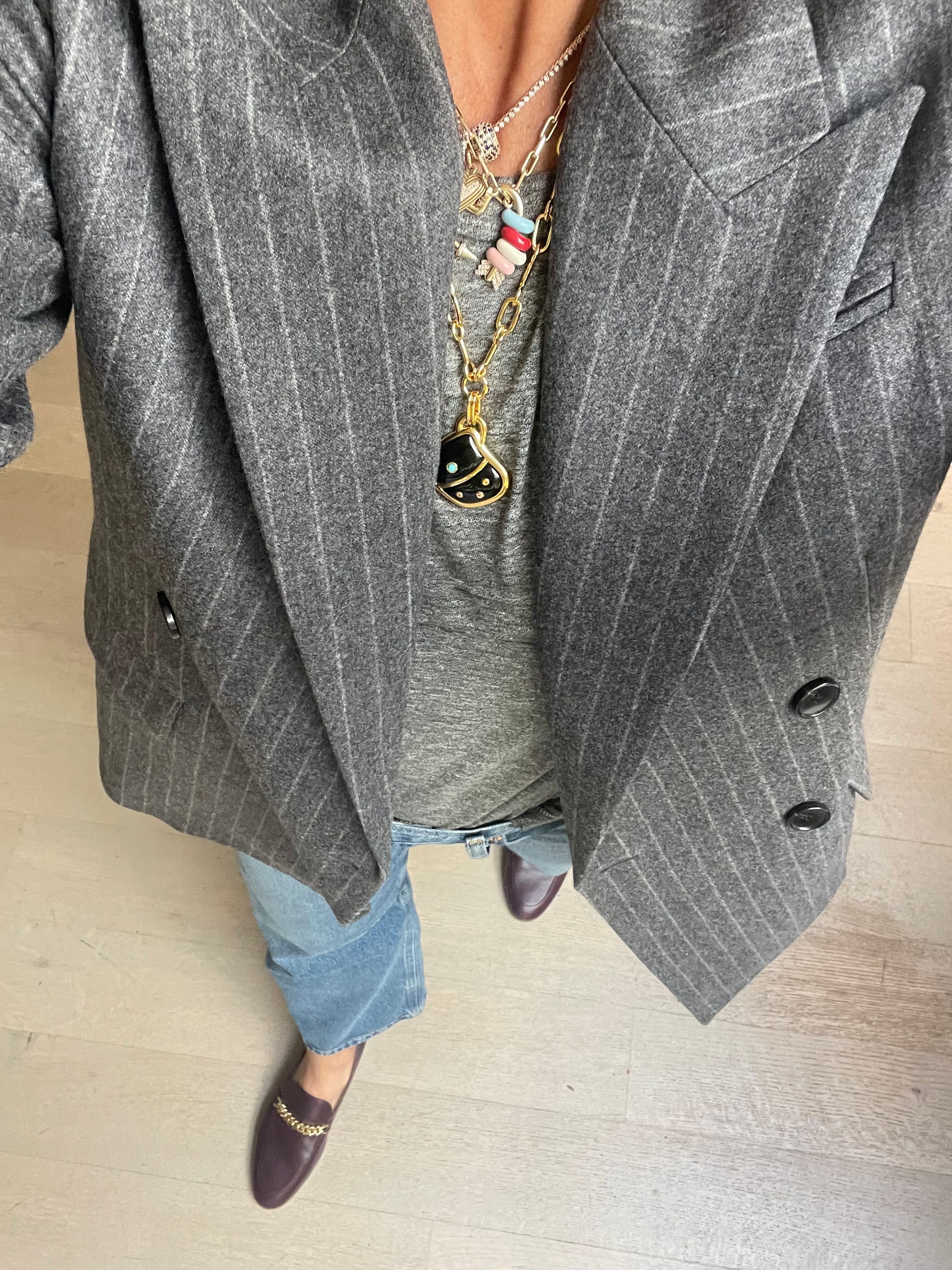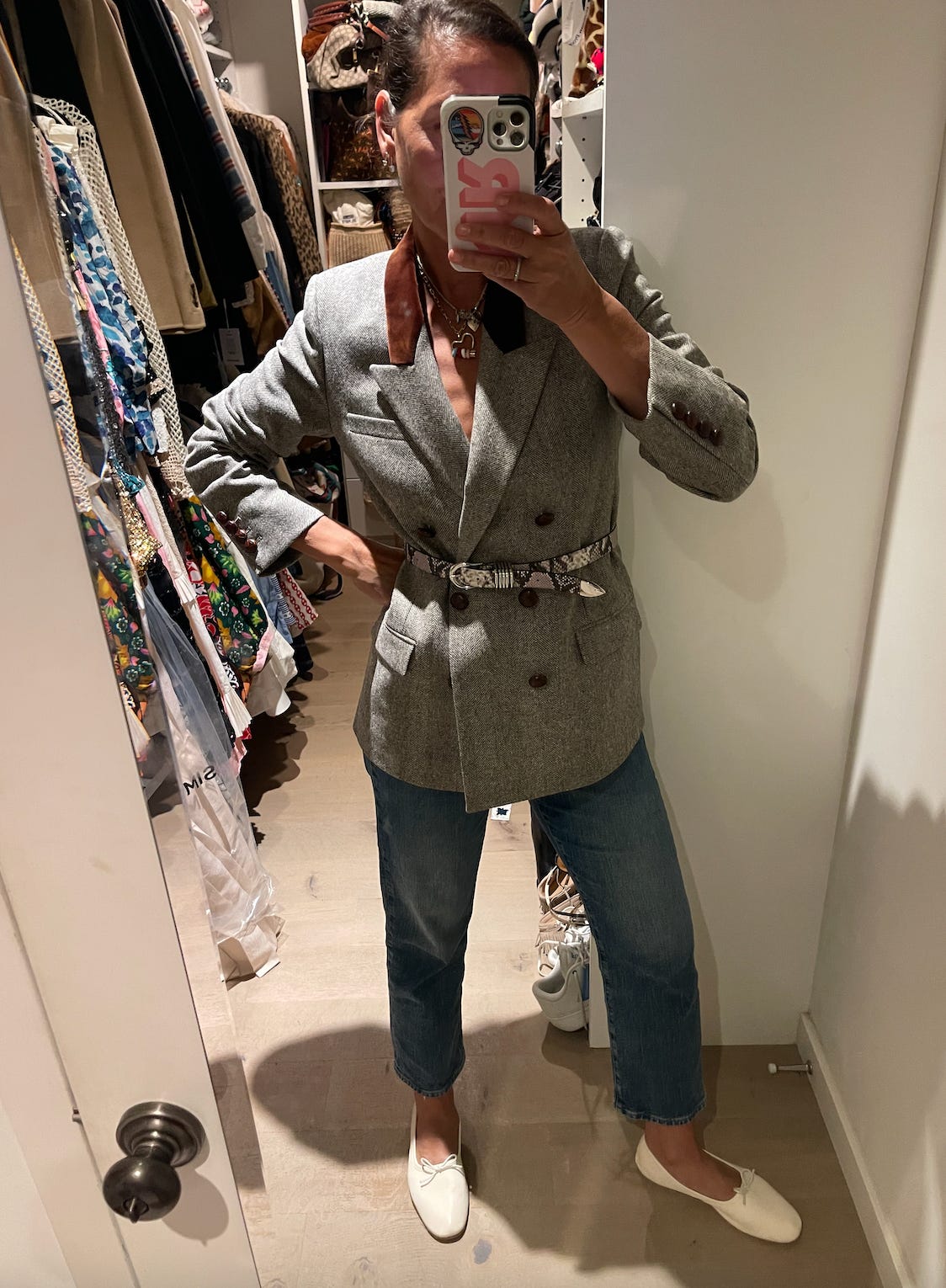 I’ve built this closet of mine by following one cardinal rule: never pay full price. While my job comes with plenty of freebies, I am always quick to take advantage of the exclusive discounts I receive—and, just in time for holiday shopping, I’ve managed to finagle loads of them for you. Let’s start with the big stuff: My stay-on, super-blingy jewelry by Adina Reyter, which I wear with everything from wintry tweed (Doen) to summery polka dots (Coniglio Palm Beach) to lived-in t-shirts and proper pinstripes. (The agate shell pendant necklace is by Lizzie Fortunato.) My entire Adina Reyter stack can be had for 15% less with the code MARLIEN15. My Dehanche belt, above, along with all belts in stock are currently 30% off!