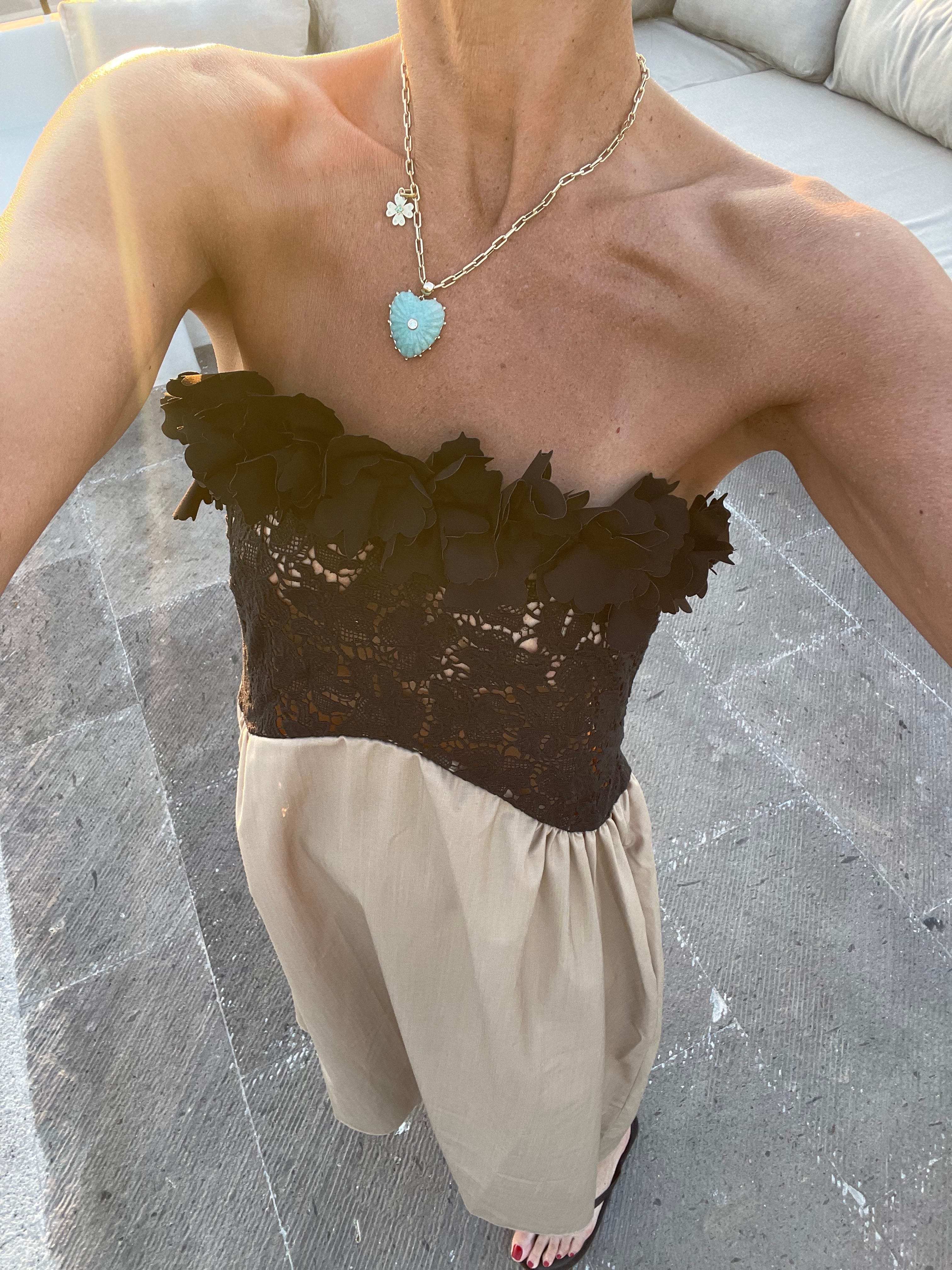 Even though I wasn’t invited to the wedding, I still showed up like a well-dressed guest in my strapless Kiki Vargas, above, and Maison Mayle floral slip, below!