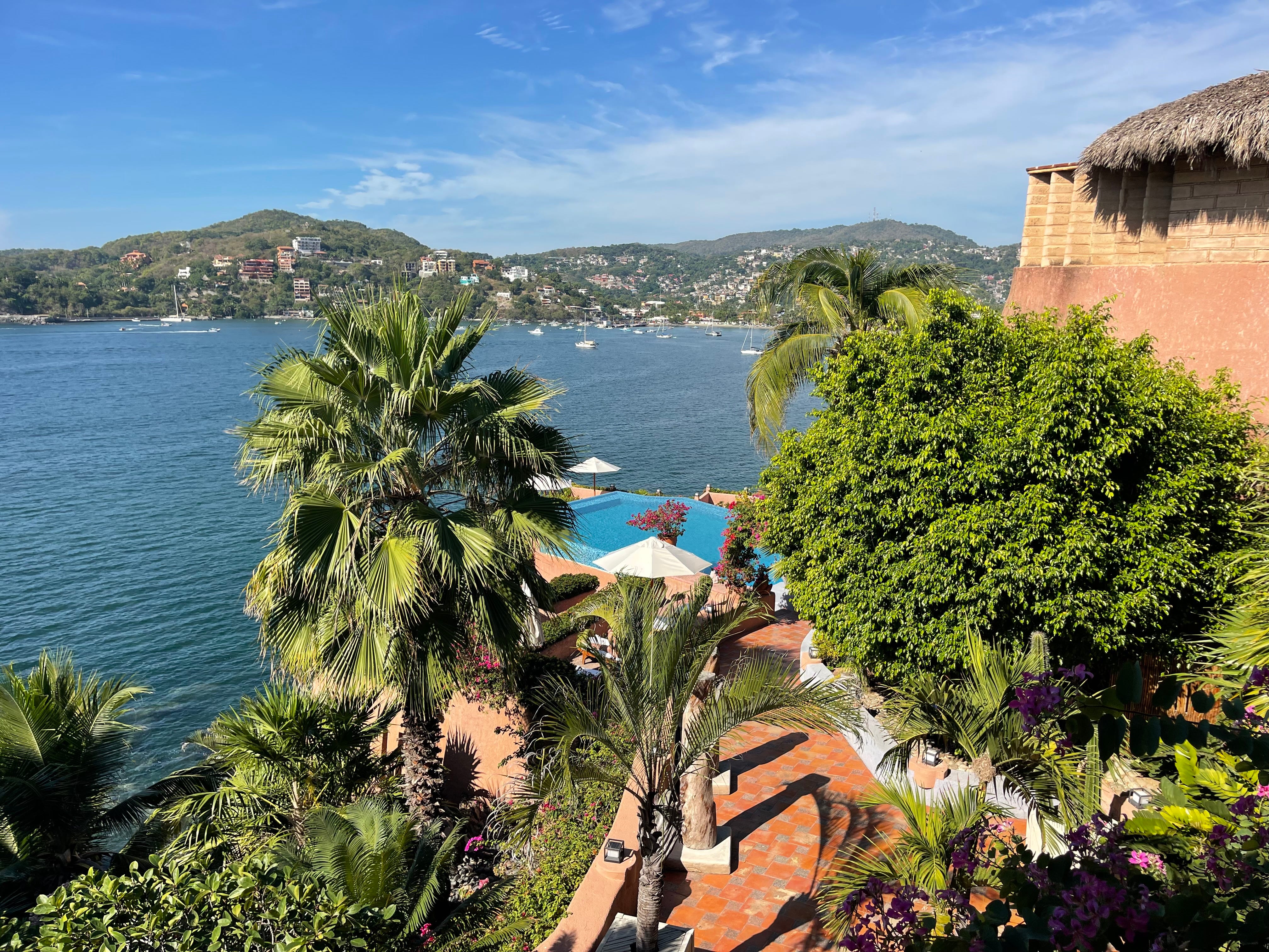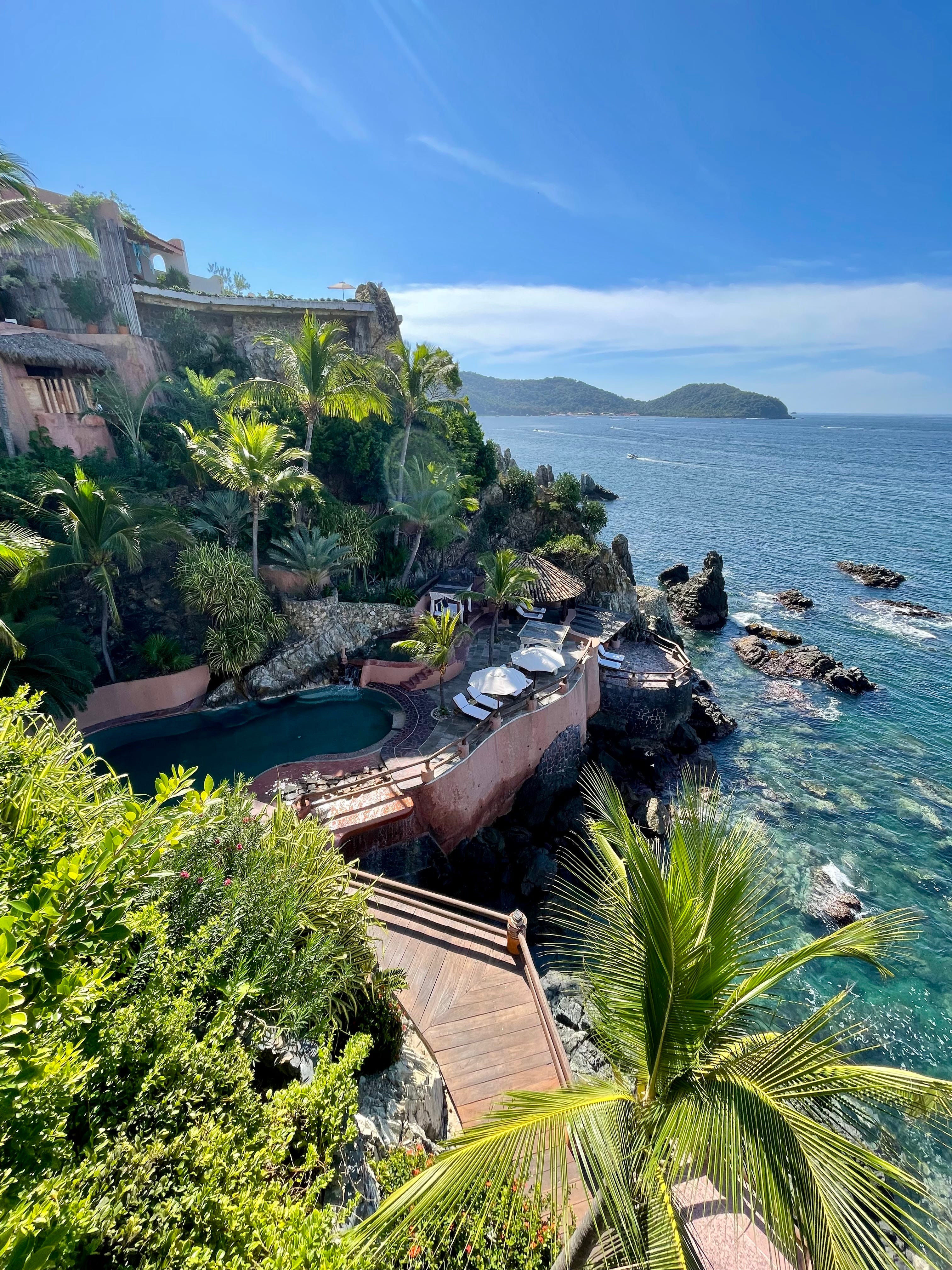 Next up was La Casa Que Canta—aptly named the house that sings—and it truly lived up to its name. The enchanting thatched-roof hotel, nestled on cascading terracotta terraces that trickle down into Zihuatanejo Bay, was recommended to me by my friend and Mother Denim founder Lela Becker. The sweeping wraparound views held me spellbound from sunrise to sunset, while the steep, winding stairs connecting my room to the saltwater pool doubled as a scenic calorie-burner, affording lots of photo opps along the way.